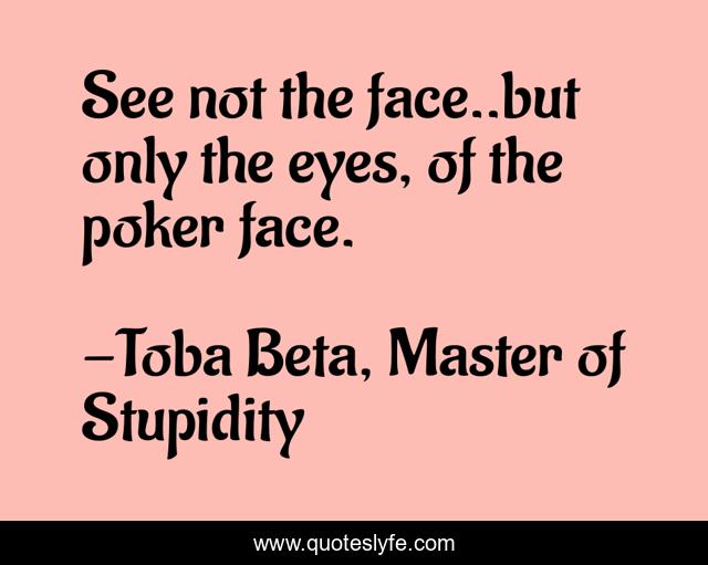 This page presents the quote "See not the face..but only the eyes, of the poker face.". Author of this quote is Toba Beta, Master of Stupidity. This quote is about trick, poker-face, eyes, cunning,.