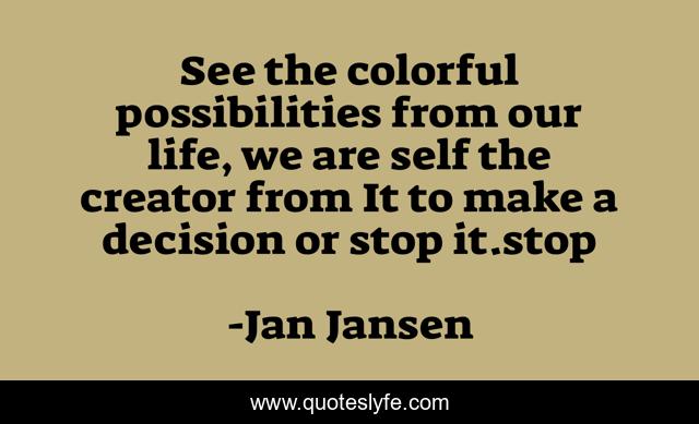 This page presents the quote "See the colorful possibilities from our life, we are self the creator from It to make a decision or stop it.stop". Author of this quote is Jan Jansen. .