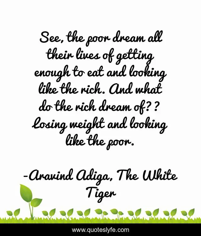 "Aravind Adiga, The White Tiger Quotes." Quoteslyfe.com, 2025. Tue. 09 Dec. 2025. <https://www.quoteslyfe.com/quote/See-the-poor-dream-all-their-lives-2738>.
