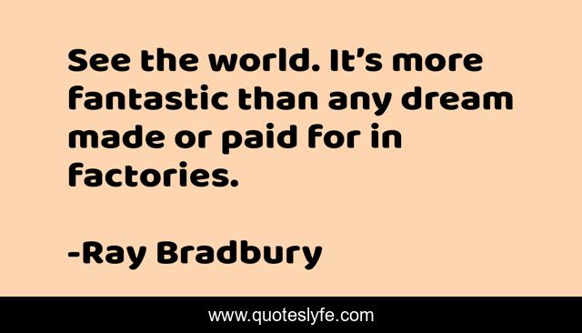 "Ray Bradbury Quotes." Quoteslyfe.com, 2025. Sat. 06 Dec. 2025. <https://www.quoteslyfe.com/quote/See-the-world-It-s-more-fantastic-89263>.