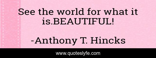This page presents the quote "See the world for what it is.BEAUTIFUL!". Author of this quote is Anthony T. Hincks. This quote is about beautiful, life, being, philosophy, it-is, see, world,.