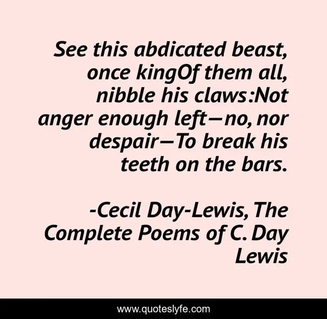 "Cecil Day-Lewis, The Complete Poems of C. Day Lewis Quotes." Quoteslyfe.com, 2025. Sat. 06 Dec. 2025. <https://www.quoteslyfe.com/quote/See-this-abdicated-beast-once-kingOf-them-134998>.