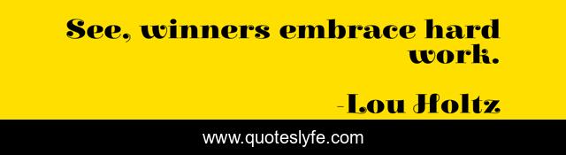 This page presents the quote "See, winners embrace hard work.". Author of this quote is Lou Holtz. This quote is about see, embrace, hard work,.