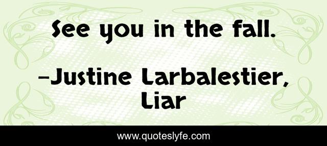 "Justine Larbalestier, Liar Quotes." Quoteslyfe.com, 2025. Mon. 08 Dec. 2025. <https://www.quoteslyfe.com/quote/See-you-in-the-fall-257189>.