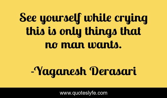 This page presents the quote "See yourself while crying this is only things that no man wants.". Author of this quote is Yaganesh Derasari. This quote is about manhood, real-life, crying,.