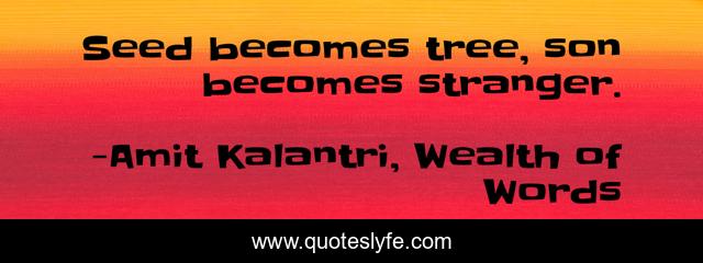 "Amit Kalantri, Wealth of Words Quotes." Quoteslyfe.com, 2025. Mon. 08 Dec. 2025. <https://www.quoteslyfe.com/quote/Seed-becomes-tree-son-becomes-stranger-23882>.