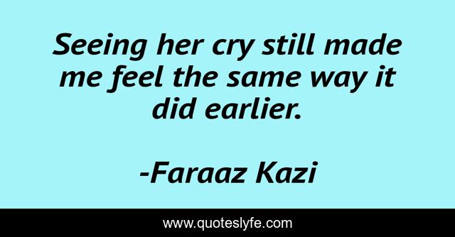 This page presents the quote "Seeing her cry still made me feel the same way it did earlier.". Author of this quote is Faraaz Kazi. This quote is about missing-you, lovers, love, crying, affection,.
