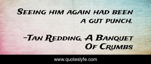 This page presents the quote "Seeing him again had been a gut punch.". Author of this quote is Tan Redding, A Banquet Of Crumbs. This quote is about loss, lovers, love, destiny, fate, contemporary, romance, sin, affection,.