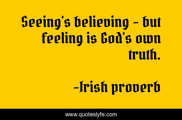 "Irish proverb Quotes." Quoteslyfe.com, 2025. Sat. 06 Dec. 2025. <https://www.quoteslyfe.com/quote/Seeing-s-believing-but-feeling-is-God-278260>.