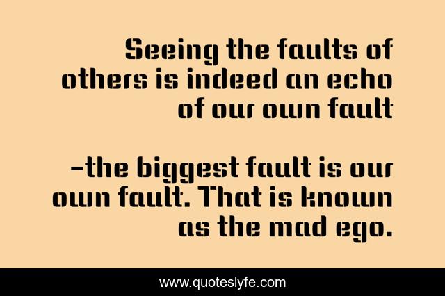 "the biggest fault is our own fault. That is known as the mad ego. Quotes." Quoteslyfe.com, 2025. Sat. 06 Dec. 2025. <https://www.quoteslyfe.com/quote/Seeing-the-faults-of-others-is-indeed-67740>.