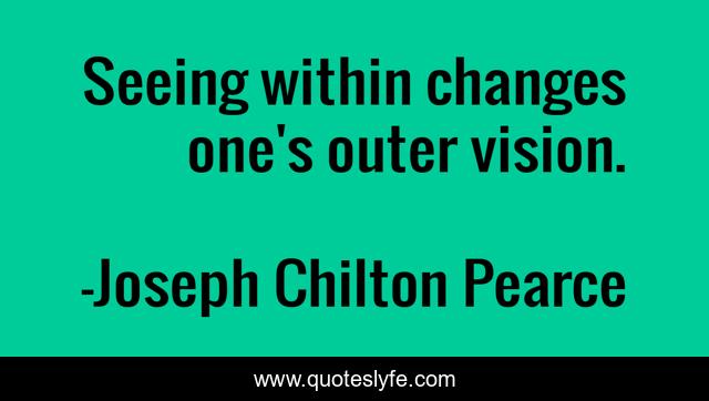 This page presents the quote "Seeing within changes one's outer vision.". Author of this quote is Joseph Chilton Pearce. This quote is about changes, within, outer, vision, seeing,.