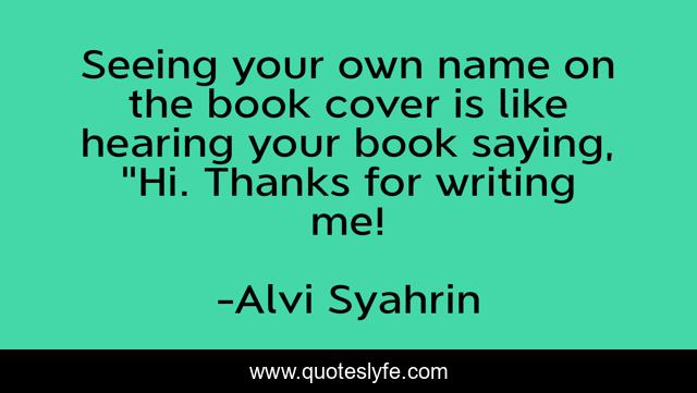 This page presents the quote "Seeing your own name on the book cover is like hearing your book saying, "Hi. Thanks for writing me!". Author of this quote is Alvi Syahrin. .