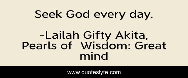 "Lailah Gifty Akita, Pearls of Wisdom: Great mind Quotes." Quoteslyfe.com, 2025. Sat. 06 Dec. 2025. <https://www.quoteslyfe.com/quote/Seek-God-every-day-85350>.
