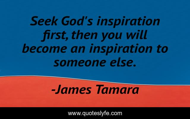This page presents the quote "Seek God's inspiration first, then you will become an inspiration to someone else.". Author of this quote is James Tamara. This quote is about god, holy-spirit, inspirational-religious, jesus,.