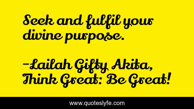 "Lailah Gifty Akita, Think Great: Be Great! Quotes." Quoteslyfe.com, 2025. Fri. 05 Dec. 2025. <https://www.quoteslyfe.com/quote/Seek-and-fulfil-your-divine-purpose-121288>.