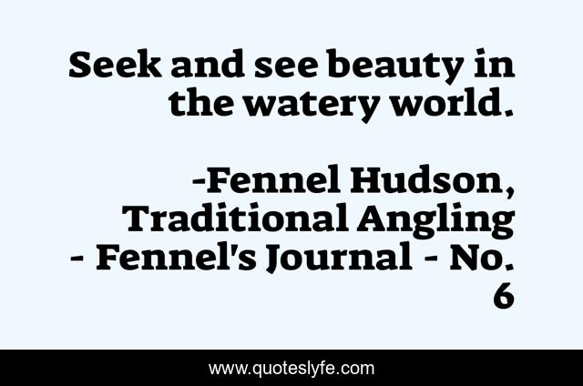 "Fennel Hudson, Traditional Angling - Fennel's Journal - No. 6 Quotes." Quoteslyfe.com, 2025. Fri. 05 Dec. 2025. <https://www.quoteslyfe.com/quote/Seek-and-see-beauty-in-the-watery-60963>.