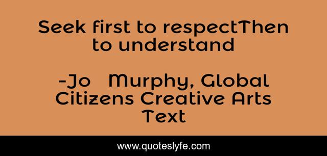 "Jo Murphy, Global Citizens Creative Arts Text Quotes." Quoteslyfe.com, 2025. Sat. 06 Dec. 2025. <https://www.quoteslyfe.com/quote/Seek-first-to-respectThen-to-understand-156994>.
