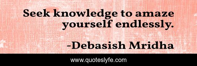 This page presents the quote "Seek knowledge to amaze yourself endlessly.". Author of this quote is Debasish Mridha. This quote is about amaze-yourself, knowledge, philosophy, debasish-mridha, quotes, inspirational, enthusiasm, debasish-mridha-m-d,.
