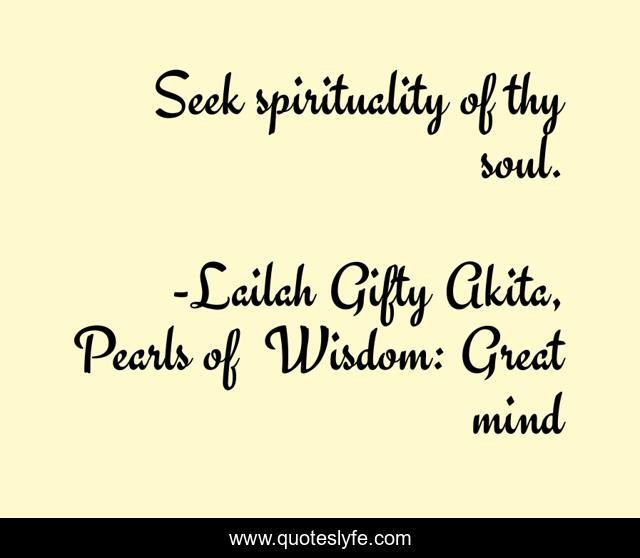 "Lailah Gifty Akita, Pearls of Wisdom: Great mind Quotes." Quoteslyfe.com, 2025. Sat. 06 Dec. 2025. <https://www.quoteslyfe.com/quote/Seek-spirituality-of-thy-soul-48196>.