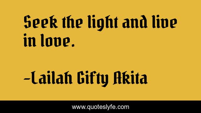 "Lailah Gifty Akita Quotes." Quoteslyfe.com, 2025. Mon. 08 Dec. 2025. <https://www.quoteslyfe.com/quote/Seek-the-light-and-live-in-love-125171>.