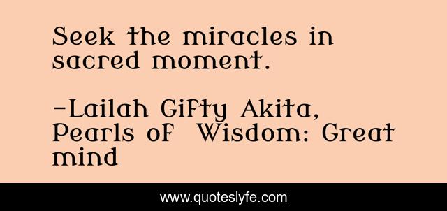 "Lailah Gifty Akita, Pearls of Wisdom: Great mind Quotes." Quoteslyfe.com, 2025. Mon. 08 Dec. 2025. <https://www.quoteslyfe.com/quote/Seek-the-miracles-in-sacred-moment-105406>.