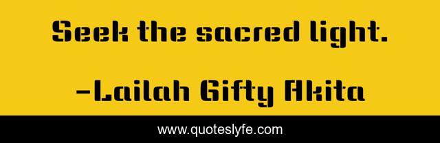 This page presents the quote "Seek the sacred light.". Author of this quote is Lailah Gifty Akita. This quote is about light, spiritual, seek, encouragement,.
