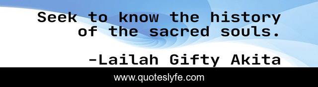 This page presents the quote "Seek to know the history of the sacred souls.". Author of this quote is Lailah Gifty Akita. This quote is about literature, inspirational, souls, great-people, sacred, enthusiasm, history,.