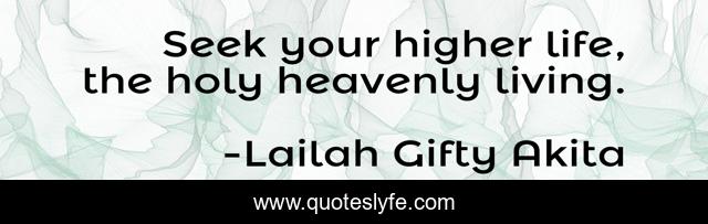 This page presents the quote "Seek your higher life, the holy heavenly living.". Author of this quote is Lailah Gifty Akita. This quote is about faith, life, self-awareness, holy, holiness, christian, theology, living, religion,.