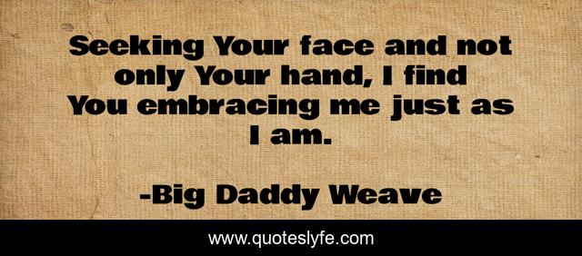 This page presents the quote "Seeking Your face and not only Your hand, I find You embracing me just as I am.". Author of this quote is Big Daddy Weave. This quote is about motivation, relationship,.