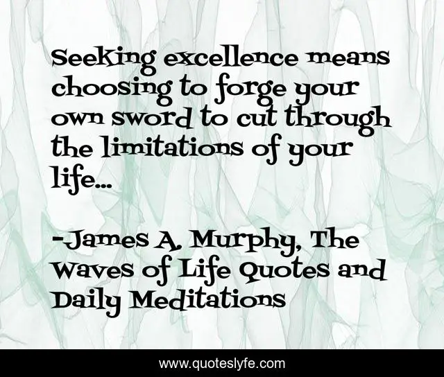 "James A. Murphy, The Waves of Life Quotes and Daily Meditations Quotes." Quoteslyfe.com, 2025. Sun. 07 Dec. 2025. <https://www.quoteslyfe.com/quote/Seeking-excellence-means-choosing-to-forge-your-229141>.
