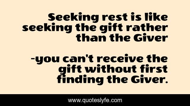 "you can't receive the gift without first finding the Giver. Quotes." Quoteslyfe.com, 2025. Sat. 06 Dec. 2025. <https://www.quoteslyfe.com/quote/Seeking-rest-is-like-seeking-the-gift-216630>.