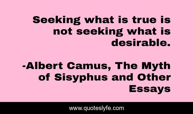 "Albert Camus, The Myth of Sisyphus and Other Essays Quotes." Quoteslyfe.com, 2025. Fri. 05 Dec. 2025. <https://www.quoteslyfe.com/quote/Seeking-what-is-true-is-not-seeking-8987>.