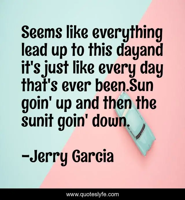 This page presents the quote "Seems like everything lead up to this dayand it's just like every day that's ever been.Sun goin' up and then the sunit goin' down.". Author of this quote is Jerry Garcia. This quote is about life, death, time,.