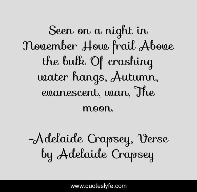 "Adelaide Crapsey, Verse by Adelaide Crapsey Quotes." Quoteslyfe.com, 2025. Sat. 06 Dec. 2025. <https://www.quoteslyfe.com/quote/Seen-on-a-night-in-November-How-234079>.