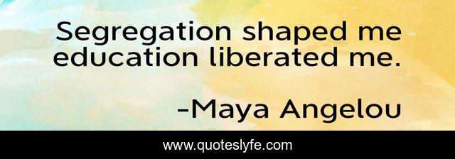This page presents the quote "Segregation shaped me education liberated me.". Author of this quote is Maya Angelou. This quote is about enthusiasm, race, education, inspirational, learning,.