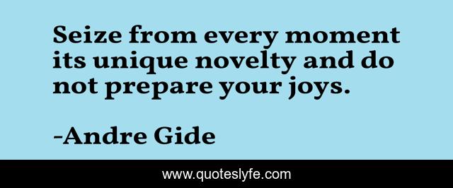 This page presents the quote "Seize from every moment its unique novelty and do not prepare your joys.". Author of this quote is Andre Gide. .