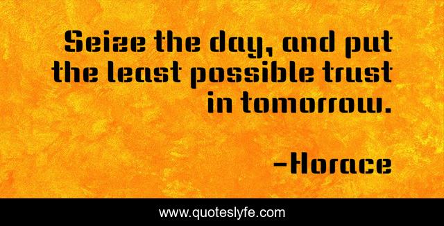 This page presents the quote "Seize the day, and put the least possible trust in tomorrow.". Author of this quote is Horace. This quote is about tomorrow, day, possible,.