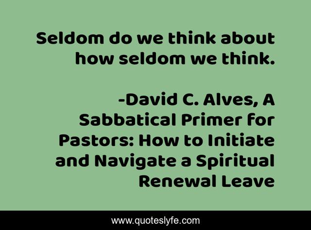 "David C. Alves, A Sabbatical Primer for Pastors: How to Initiate and Navigate a Spiritual Renewal Leave Quotes." Quoteslyfe.com, 2025. Fri. 05 Dec. 2025. <https://www.quoteslyfe.com/quote/Seldom-do-we-think-about-how-seldom-162984>.