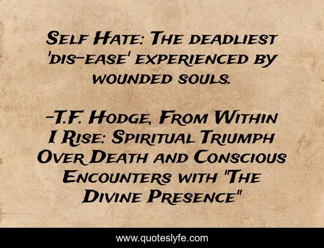 "T.F. Hodge, From Within I Rise: Spiritual Triumph Over Death and Conscious Encounters with "The Divine Presence" Quotes." Quoteslyfe.com, 2025. Tue. 09 Dec. 2025. <https://www.quoteslyfe.com/quote/Self-Hate-The-deadliest-dis-ease-experienced-142655>.