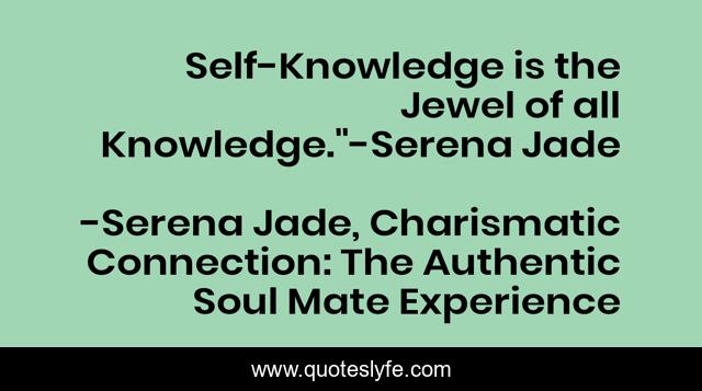 This page presents the quote "Self-Knowledge is the Jewel of all Knowledge."-Serena Jade". Author of this quote is Serena Jade, Charismatic Connection: The Authentic Soul Mate Experience. This quote is about knowledge, soul-mates, self-knowledge, serena-jade, charismatic-connection, twin-souls,.
