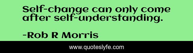 This page presents the quote "Self-change can only come after self-understanding.". Author of this quote is Rob R Morris. This quote is about success, self-improvement, inspirational, self-help, enthusiasm, happiness, change,.