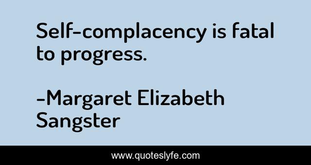 "Margaret Elizabeth Sangster Quotes." Quoteslyfe.com, 2025. Fri. 05 Dec. 2025. <https://www.quoteslyfe.com/quote/Self-complacency-is-fatal-to-progress-259183>.