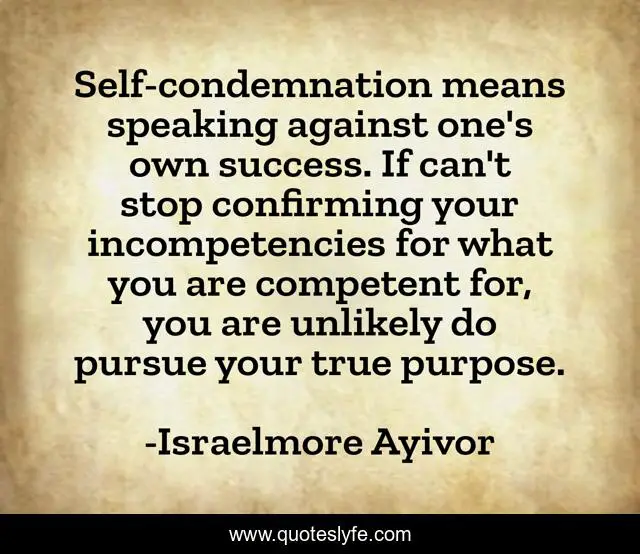 Self-condemnation means speaking against one's own success. If can't stop confirming your incompetencies for what you are competent for, you are unlikely do pursue your true purpose.