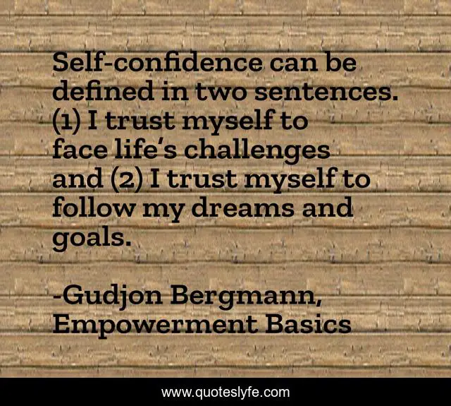 This page presents the quote "Self-confidence can be defined in two sentences. (1) I trust myself to face life’s challenges and (2) I trust myself to follow my dreams and goals.". Author of this quote is Gudjon Bergmann, Empowerment Basics. .