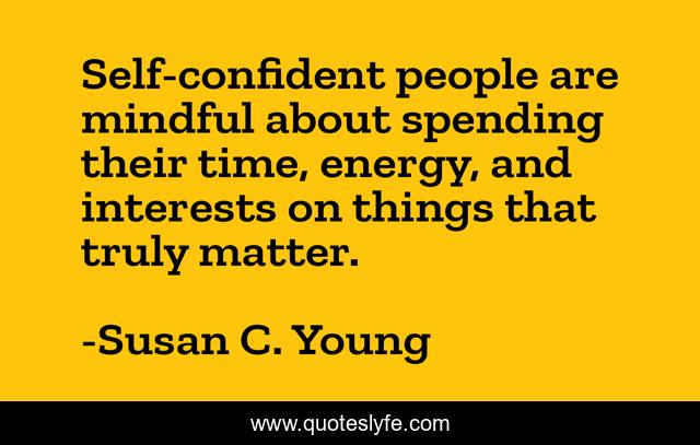 This page presents the quote "Self-confident people are mindful about spending their time, energy, and interests on things that truly matter.". Author of this quote is Susan C. Young. This quote is about confidence, self-confidence, susan-young, relationship, communication-skills, communication, first-impressions, confidence-and-attitude, motivational-speaker,.
