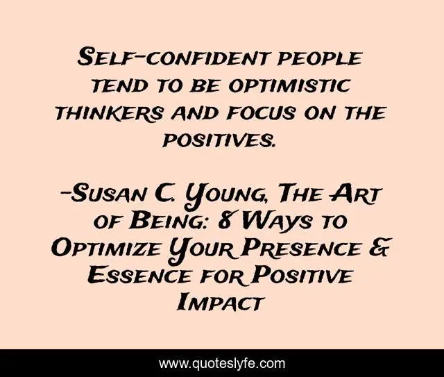 "Susan C. Young, The Art of Being: 8 Ways to Optimize Your Presence & Essence for Positive Impact Quotes." Quoteslyfe.com, 2025. Fri. 05 Dec. 2025. <https://www.quoteslyfe.com/quote/Self-confident-people-tend-to-be-optimistic-199370>.