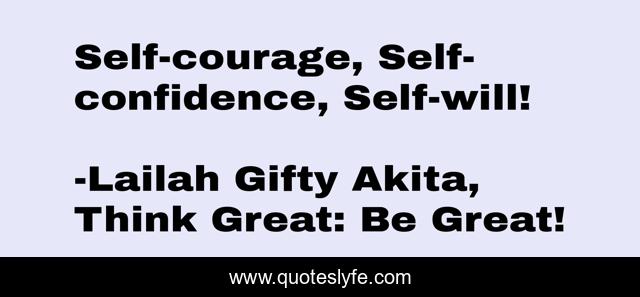 "Lailah Gifty Akita, Think Great: Be Great! Quotes." Quoteslyfe.com, 2025. Tue. 09 Dec. 2025. <https://www.quoteslyfe.com/quote/Self-courage-Self-confidence-Self-will-91740>.