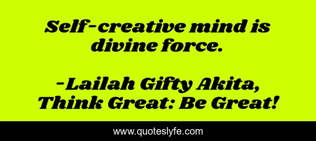 "Lailah Gifty Akita, Think Great: Be Great! Quotes." Quoteslyfe.com, 2025. Sat. 06 Dec. 2025. <https://www.quoteslyfe.com/quote/Self-creative-mind-is-divine-force-87294>.