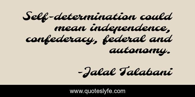 This page presents the quote "Self-determination could mean independence, confederacy, federal and autonomy.". Author of this quote is Jalal Talabani. This quote is about self-determination, mean,.