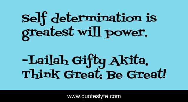 "Lailah Gifty Akita, Think Great: Be Great! Quotes." Quoteslyfe.com, 2025. Mon. 08 Dec. 2025. <https://www.quoteslyfe.com/quote/Self-determination-is-greatest-will-power-34543>.